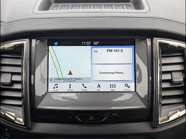 Experience rugged capability and refined comfort with this Black 2019 Ford Ranger 4x4 Lariat SuperCrew. Equipped with the powerful EcoBoost 2.3L Turbo engine and a 10-speed automatic transmission, this Ranger is ready for any adventure. The FX4 Off-Road Package, Trailer Tow Package, and 18-inch machined-aluminum wheels ensure you're prepared both on and off the road. Stay connected and secure with FordPass Connect, SYNC infotainment, Apple CarPlay/Android Auto, and advanced safety features like Front Automatic Emergency Braking, Blind Spot Monitoring with Trailer Coverage, Lane Keeping Assist, and Rear Cross Traffic Alert. Enjoy premium touches including leather-trimmed heated seats, power-adjustable front seats, dual-zone automatic climate control, push-button start, and ambient lighting. Additional highlights include a power locking tailgate, LED headlights and bed light, rearview camera, and a premium audio system. This Ranger blends strength, technology, and comfort, making it the perfect choice for work or play. Don't miss out-schedule your test drive today!
