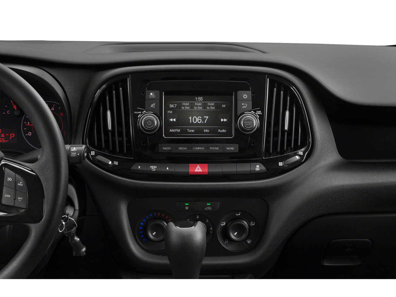 Clean CARFAX 12V Front Power Outlet(s), 160 Amps Alternator, 2 Front Headrests, 2 One-touch Windows, 3-point Front Seatbelts, 4 Passenger Seat Manual Adjustments, 4 Total Speakers, 4-wheel ABS, 5 In. Infotainment Screen Size, 50 State Emissions, 6 Driver Seat Manual Adjustments, 700 CCA Battery Rating, 9-Speed Shiftable Automatic, Adjustable Front Headrests, Air Filtration, AM/FM Radio, Audio Steering Wheel Mounted Controls, Auto Delay Off Headlights, Auto-locking Power Door Locks, Barn Rear Trunk/liftgate, Battery Saver, Black Body Side Moldings, Black Door Handle Color, Black Grille Color, Black Window Trim, Bluetooth® Auxiliary Audio Input, Bluetooth® Wireless Data Link, Body-color Front Bumper Color, Body-color Mirror Color, Body-color Rear Bumper Color, Braking Assist, Bucket Front Seat Type, Cargo Area Light, Cargo Tie-down Anchors And Hooks Storage, Carpet Floor Material, Clock, Coil Front Spring Type, Coil Rear Spring Type, Cruise Control, Cruise Control Steering Wheel Mounted Controls, DAYTIME RUNNING HEADLAMPS, Diameter 16 Mm Rear Stabilizer Bar, Diameter 26 Mm Front Stabilizer Bar, Digital Odometer, Door Pockets Storage, Door Unlock Impact Sensor, Driver Knee Airbags, Drivers Seat Armrests, Drum Rear Brake Type, Dual Front Airbags, Dual Manual Sliding Side Door Type, Electronic Brakeforce Distribution, External Temperature Display, Front Air Conditioning, Front Assist Handle, Front Crumple Zones, Front Cupholders, Front Emergency Locking Retractors, Front License Plate Bracket, Front Overhead Console, Front Power Windows, Front Reading Lights, FRONT RUBBER FLOOR MATS, Front Seatbelt Force Limiters, Front Seatbelt Pretensioners, Front Seatbelt Warning Sensor, Front Side Airbags, Front Side Curtain Airbags, Fuel Cut-off Impact Sensor, Full Wheel Covers, FWD, Halogen Headlights, Heated Side Mirrors, Height Driver Seat Manual Adjustments, Hill Holder Control, In Dash Rearview Monitor, Independent Front Suspension Classification, Independent Rear Suspension Classification, Inflator Kit Spare Tire Kit, Intermittent Front Wipers, Jack Auxiliary Audio Input, Keyless Entry Multi-function Remote, Leather Steering Wheel Trim, Low Battery Warnings And Reminders, Low Fuel Level Warnings And Reminders, Lower Control Arms Front Suspension Type, Lumbar Driver Seat Manual Adjustments, MacPherson Front Struts, Maintenance Due Warnings And Reminders, Maintenance-free Battery, Manual Day/night Rearview Mirror, Manual Folding Side Mirror Adjustments, MANUFACTURERS STATEMENT OF ORIGIN, Mast Antenna Type, MPG Fuel Economy Display, Multi-link Rear Suspension Type, Occupant Sensing Passenger Airbag Deactivation, Panic Alarm Multi-function Remote, PARKSENSE REAR PARK ASSIST SYSTEM, Post-collision Safety System Impact Sensor, Power Brakes, Power Side Mirror Adjustments, Power Steering, Powertrain Hour Meter, Premium Cloth Upholstery, QUICK ORDER PACKAGE 24D, Range Fuel Economy Display, Rear Assist Handle, REAR HINGED DOORS WITH GLASS, REAR WIPER / WASHER / DEFROSTER GROUP, Rearview Camera System, Reclining Driver Seat Manual Adjustments, Reclining Passenger Seat Manual Adjustments, Roadside Assistance Driver Assistance App, Roll Stability Control, Safety Brake Pedal System, Silver Surround Grille Color, Single Front Air Conditioning Zones, SPARE TIRE AND INFLATOR KIT, Speed Sensitive Volume Control, Stability Control, Steel Wheels, Sun Visors, Tachometer Gauge, Tigershark MultiAir 2 2.4L I4 178hp 174ft. lbs., Tilt And Telescopic Steering Wheel, Tire Pressure Monitoring System, Tire Sealant Spare Tire Kit, Touch Screen Display Radio, Traction Control, Trailer Stability Control, Trip Odometer, Trunk Release Multi-function Remote, Twin-tube Gas Front Shock Type, Twin-tube Gas Rear Shock Type, Uconnect Infotainment, Undefined OEM Roof Height, UPFIT INTERFACE CONNECTORS, Urethane Shift Knob Trim, USB Auxiliary Audio Input, Vehicle Immobilizer Anti-theft System, Ventilated Disc Front Brake Type, Voice Control Steering Wheel Mounted Controls, Voice Operated Hands-free Phone Call Integration, Voice Operated Radio Need a reliable and versatile work van? Check out our 2019 Ram ProMaster City Cargo Tradesman SLT in classic white. This compact cargo van is powered by a fuel-efficient Tigershark MultiAir 2.4L I4 engine paired with a smooth 9-speed shiftable automatic transmission and front-wheel drive. It's designed to handle your business needs with dual manual sliding side doors, rear hinged doors with glass, and upfit interface connectors for custom shelving or storage. Stay connected with the Uconnect infotainment system, 5-inch touchscreen display, Bluetooth® hands-free calling, and voice-operated controls. Additional features include a rearview camera system, ParkSense rear park assist, cruise control, keyless entry, power windows, and premium cloth upholstery for comfort. Safety is a priority with front and side airbags, stability control, hill holder, and a tire pressure monitoring system. Get the job done right-test drive the ProMaster City today!