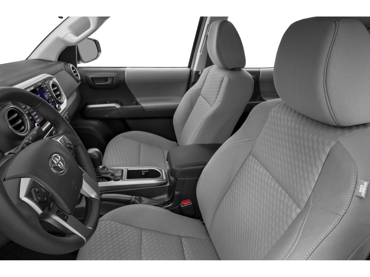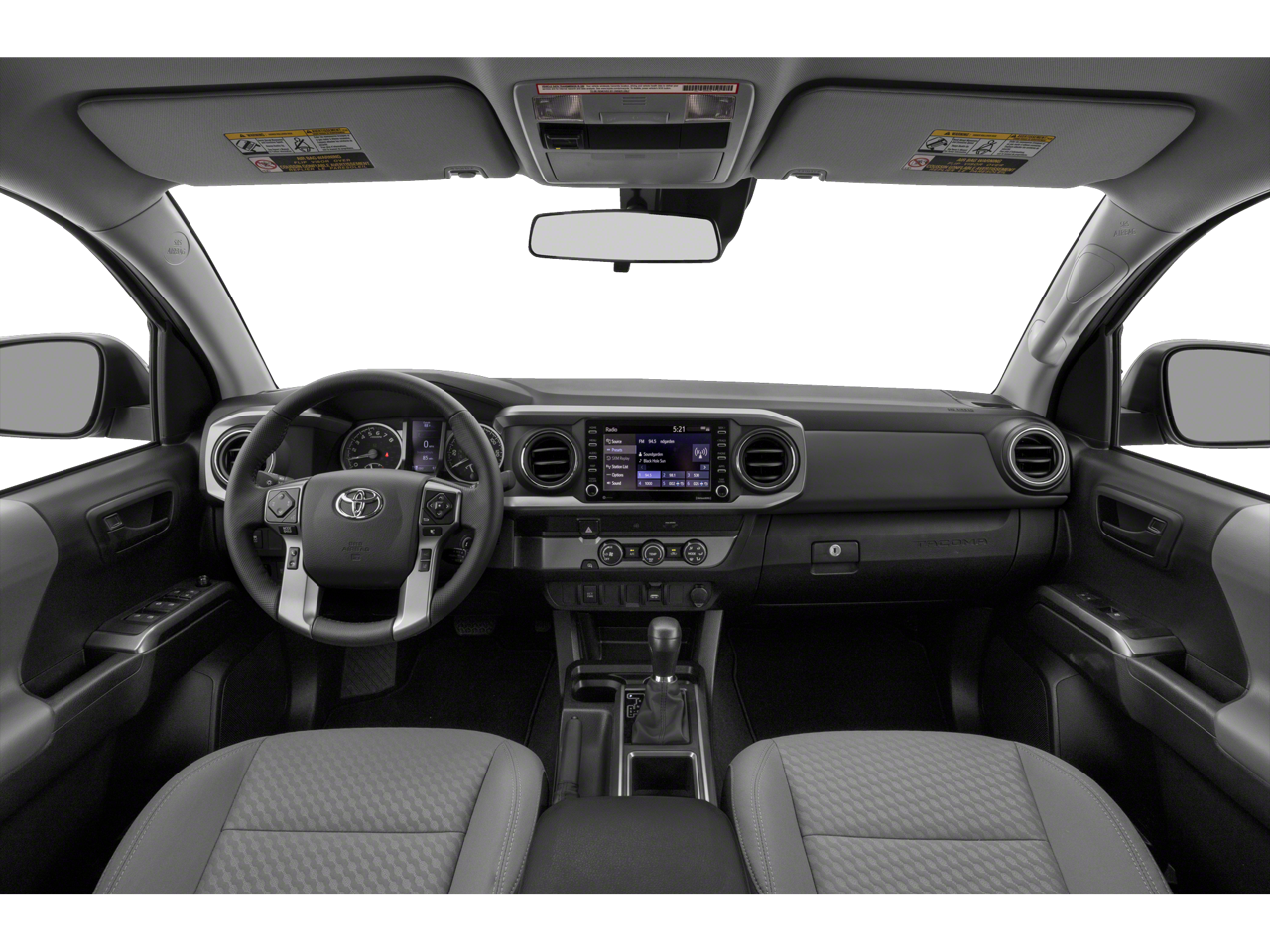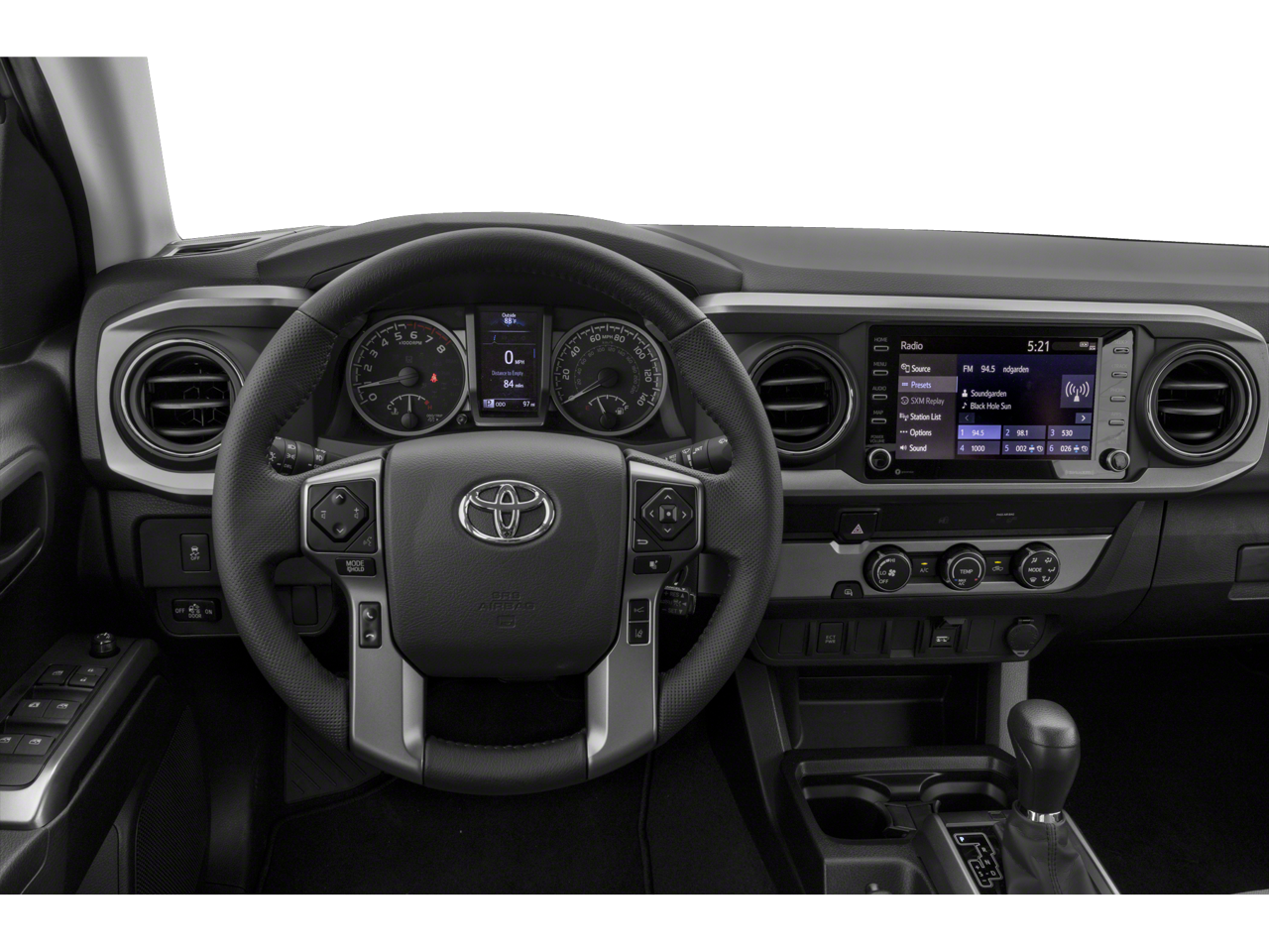 4WD, 5 Black Oval Tube Steps (TMS), 6 Speakers, ABS brakes, Air Conditioning, All Weather Floor Liner & Door Sill Protector (TMS), Alloy Wheel Locks (TMS), Alloy wheels, AM/FM radio: SiriusXM, Anti-whiplash front head restraints, Apple CarPlay/Android Auto, Auto High-beam Headlights, Auto-Dimming Inside Rear-View Mirror, Auto-dimming Rear-View mirror, Automatic temperature control, Axle Ratio: 3.91, Bar Gray Ring Chrome Front Grille, Bed Lighting Kit (TMS), Blind Spot Monitor w/Rear Cross Traffic Alert, Brake assist, Bumpers: body-color, Chrome Rear Bumper, Color-Keyed Overfenders, Daytime Running Lamps, Driver door bin, Dual front impact airbags, Dual front side impact airbags, Electronic Stability Control, Emergency communication system: Safety Connect with 1-year trial, Exterior Parking Camera Rear, Fabric Seat Trim (FC), Front anti-roll bar, Front Bucket Seats, Front Center Armrest, Front dual zone A/C, Front Fog Lamps, Front fog lights, Front reading lights, Front Seats, Front wheel independent suspension, Illuminated entry, Knee airbag, Low tire pressure warning, Mudguards (TMS), Occupant sensing airbag, Outside temperature display, Overhead airbag, Overhead console, Panic alarm, Passenger door bin, Power door mirrors, Power driver seat, Power Sliding Rear Window w/Privacy Glass, Power steering, Power windows, Preferred Owners Portfolio (TMS), Radio: AM/FM Radio, Radio: Premium w/AM/FM/Nav/App Suite, Rear Parking Assist Sonar, Rear step bumper, Remote keyless entry, Speed control, Speed-sensing steering, Split folding rear seat, SR5 Package, Steering wheel mounted audio controls, Tachometer, Telescoping steering wheel, Tilt steering wheel, Traction control, Trip computer, Variably intermittent wipers, Wheels: 16 x 7J Silver Alloy, 4WD.