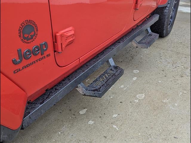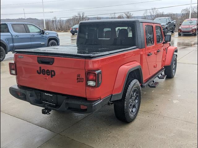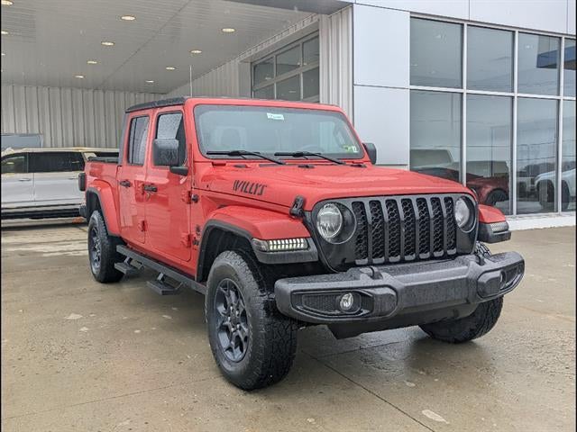 Check out this bold Red 2023 Jeep Gladiator Willys 4x4 Crew Cab, ready for adventure with legendary Jeep capability and style. Powered by a robust 3.6L V6 engine paired with an 8-speed shiftable automatic transmission, this Gladiator is equipped for off-road fun and everyday versatility. Enjoy premium features like Apple CarPlay and Android Auto integration on a 7-inch Uconnect touchscreen, SiriusXM Satellite Radio, Bluetooth®, and convenient USB-C and USB power outlets. Benefit from the safety and confidence of a rearview camera, trailer stability control, rear tow hooks, and a power locking tailgate. The Black 3-piece hard top, running boards, and Willys package details add rugged appeal, while automatic climate control, push-button start, and a customizable instrument cluster enhance every drive. Don't miss the chance to own this distinctive and well-equipped Gladiator-visit us today for a test drive!